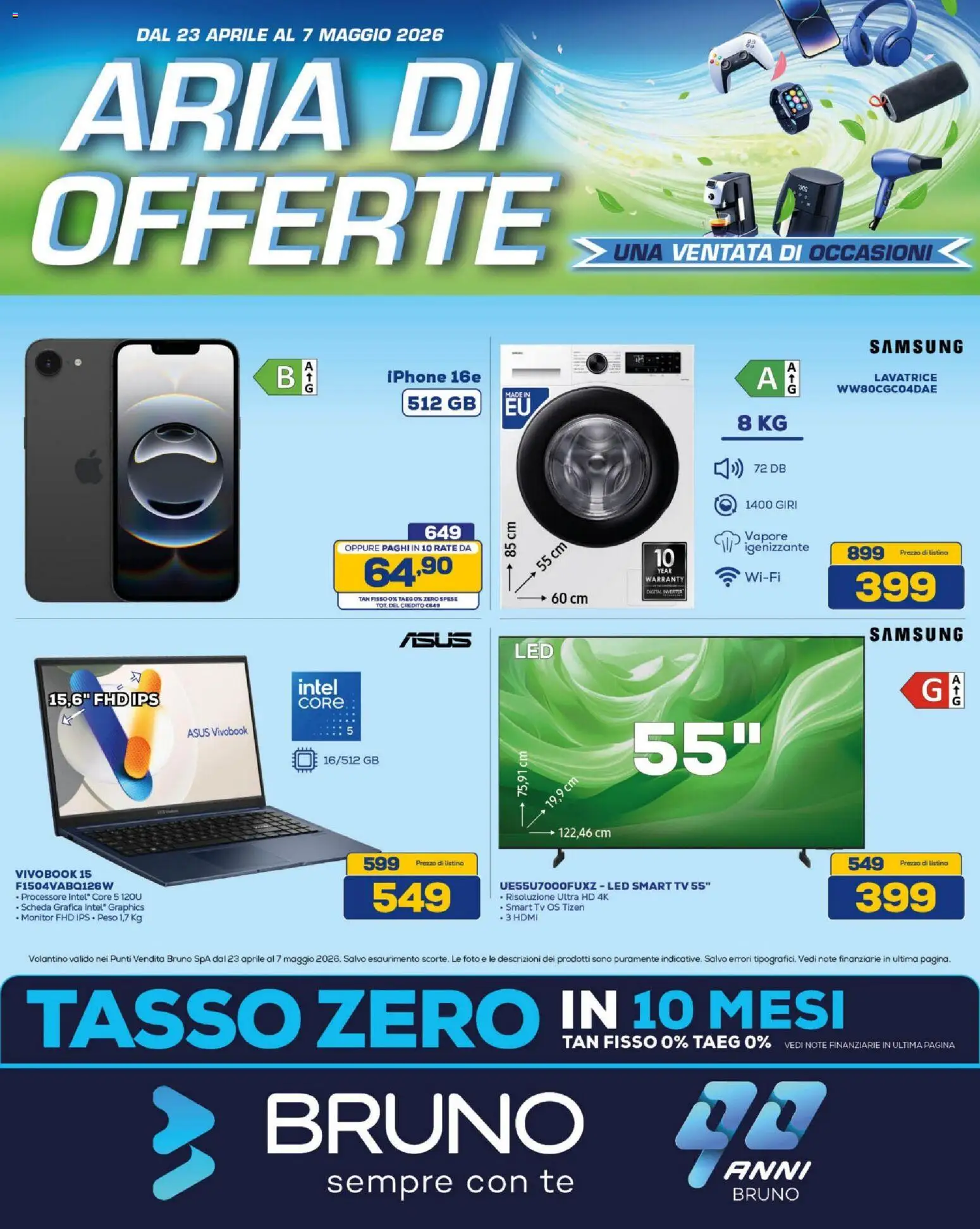 []Le promozioni sono valide dal 23/04/2026 - 07/05/2026, ma fai attenzione: gli sconti sono limitati nel tempo e i prodotti più richiesti potrebbero terminare presto. Non perdere l’occasione di scoprire cosa BRUNO ha preparato per te questa settimana: prezzi imbattibili e qualità garantita!