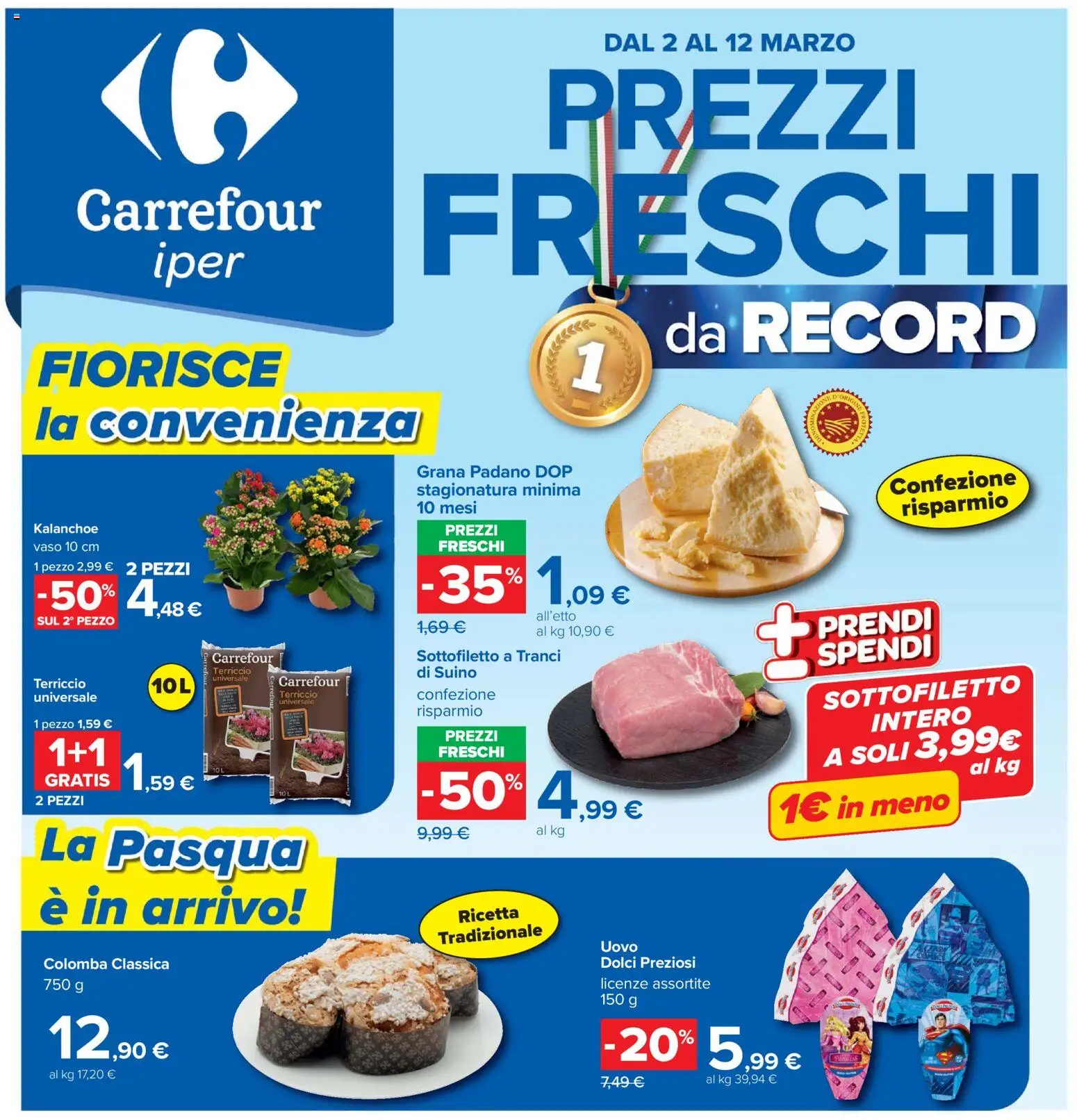 {"144662":[{"boxes":[{"content":"DAL 2 AL 12 MARZO","coord":[[433,21],[618,21],[618,38],[433,39]]},{"content":"PREZZI","coord":[[387,46],[665,44],[666,114],[388,115]]},{"content":"Carrefour","coord":[[54,134],[232,133],[232,169],[54,169]]},{"content":"FRESCHI","coord":[[302,121],[752,121],[752,202],[302,204]]},{"content":"iper","coord":[[109,173],[177,171],[176,209],[109,207]]},{"content":"FIORISCE","coord":[[25,248],[206,248],[205,281],[25,281]]},{"content":"da RECORD","coord":[[476,215],[745,214],[746,256],[476,258]]},{"content":"la convenienza","coord":[[22,283],[303,283],[303,322],[22,322]]},{"content":"Grana Padano DOP","coord":[[298,332],[414,332],[414,345],[298,346]]},{"content":"stagionatura minima","coord":[[298,346],[419,346],[419,359],[298,359]]},{"content":"Confezione","coord":[[639,341],[732,336],[733,351],[640,358]]},{"content":"10 mesi","coord":[[298,359],[343,360],[343,372],[298,371]]},{"content":"risparmio","coord":[[647,358],[726,353],[727,368],[648,374]]},{"content":"Kalanchoe","coord":[[23,376],[71,376],[71,384],[23,384]]},{"content":"PREZZI","coord":[[319,375],[361,377],[360,388],[319,386]]},{"content":"vaso 10 cm","coord":[[23,389],[72,388],[72,397],[23,398]]},{"content":"FRESCHI","coord":[[315,387],[364,388],[364,398],[314,398]]},{"content":"SUL 2\u00ba PEZZO","coord":[[24,441],[82,441],[82,451],[24,451]]},{"content":"all'etto","coord":[[385,439],[415,439],[415,447],[385,447]]},{"content":"PRENDI","coord":[[578,440],[671,436],[672,457],[579,462]]},{"content":"Carrefour","coord":[[152,468],[197,468],[197,479],[152,479]]},{"content":"Sottofiletto a Tranci","coord":[[299,466],[404,466],[404,477],[299,477]]},{"content":"SPENDI","coord":[[581,459],[671,452],[673,475],[583,483]]},{"content":"Carrefour","coord":[[149,470],[149,493],[146,493],[145,470]]},{"content":"Terriccio","coord":[[152,480],[180,480],[180,485],[152,485]]},{"content":"Carrefour","coord":[[200,485],[244,486],[244,494],[200,494]]},{"content":"di Suino","coord":[[299,478],[343,478],[343,488],[299,489]]},{"content":"Carreto","coord":[[198,486],[196,504],[193,504],[194,485]]},{"content":"Terriccio","coord":[[23,487],[62,487],[62,495],[23,495]]},{"content":"universale","coord":[[152,486],[180,485],[180,490],[152,490]]},{"content":"universale","coord":[[23,497],[70,497],[70,505],[23,506]]},{"content":"Terriccio","coord":[[200,496],[228,497],[228,502],[200,502]]},{"content":"confezione","coord":[[299,495],[356,495],[356,504],[299,504]]},{"content":"SOTTOFILETTO","coord":[[591,496],[733,484],[735,499],[592,512]]},{"content":"universale.","coord":[[200,503],[227,503],[227,507],[200,507]]},{"content":"risparmio","coord":[[300,506],[347,506],[347,517],[300,517]]},{"content":"INTERO","coord":[[626,512],[698,506],[699,522],[627,529]]},{"content":"PREZZI","coord":[[319,525],[358,524],[358,533],[319,534]]},{"content":"FRESCHI","coord":[[314,536],[364,536],[364,545],[314,545]]},{"content":"GRATIS","coord":[[32,554],[78,554],[78,567],[32,567]]},{"content":"2 PEZZI","coord":[[25,571],[60,571],[60,579],[25,581]]},{"content":"La Pasqua","coord":[[27,589],[219,594],[218,632],[26,626]]},{"content":"al kg","coord":[[696,546],[734,544],[735,558],[697,559]]},{"content":"1\u20ac in meno","coord":[[560,570],[683,565],[684,588],[561,594]]},{"content":"al kg","coord":[[386,592],[404,592],[404,602],[386,601]]},{"content":"\u00e8 in arrivo","coord":[[26,634],[220,634],[220,669],[26,669]]},{"content":"Ricetta","coord":[[327,653],[373,650],[374,662],[327,664]]},{"content":"Tradizionale","coord":[[314,669],[390,663],[391,675],[315,680]]},{"content":"Uovo","coord":[[431,676],[459,676],[459,685],[431,685]]},{"content":"Colomba Classica","coord":[[29,687],[124,688],[124,699],[29,699]]},{"content":"Dolci Preziosi","coord":[[432,687],[501,687],[501,697],[432,697]]},{"content":"licenze assortite","coord":[[431,702],[511,703],[511,712],[431,712]]}]}]}Le offerte sono valide dal 02/03/2026 - 12/03/2026, ma attenzione: gli sconti sono disponibili solo per un periodo limitato! Sfoglia subito il volantino e scopri prezzi straordinari su frutta e verdura, carne e pesce, latticini e prodotti da forno. Ogni settimana, Carrefour ti garantisce la massima qualità a prezzi imbattibili.