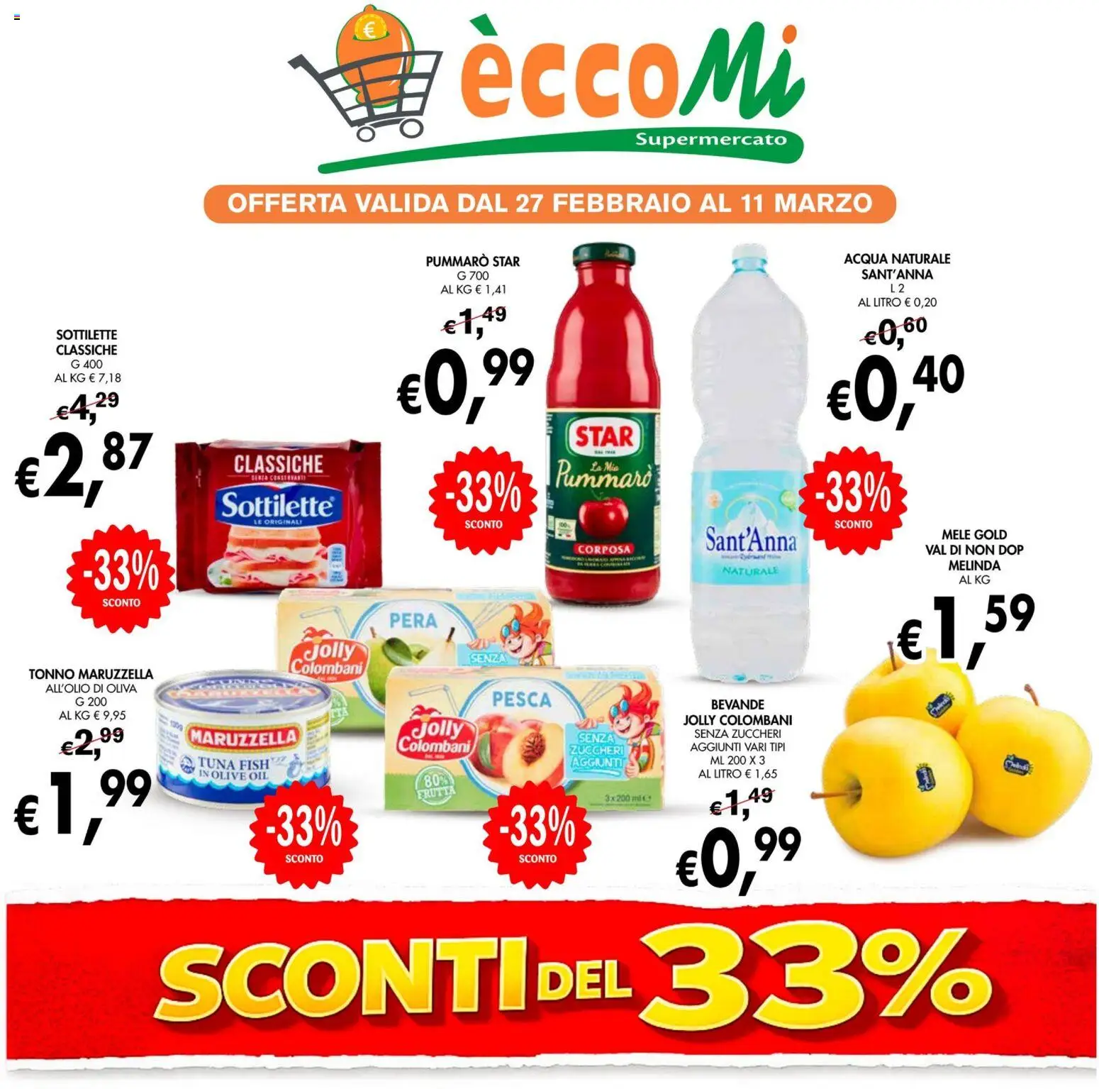 {"144293":[{"boxes":[{"content":"\u00e8ccomi","coord":[[321,5],[572,11],[570,87],[321,89]]},{"content":"Supermercato","coord":[[445,92],[553,92],[553,104],[445,104]]},{"content":"OFFERTA VALIDA DAL 27 FEBBRAIO AL 11 MARZO","coord":[[158,133],[616,133],[616,153],[158,152]]},{"content":"PUMMAR\u00d2 STAR","coord":[[298,178],[368,178],[368,188],[298,189]]},{"content":"ACQUA NATURALE","coord":[[595,177],[670,177],[670,186],[595,186]]},{"content":"SANT'ANNA","coord":[[607,189],[657,189],[657,197],[607,197]]},{"content":"SOTTILETTE","coord":[[38,229],[83,229],[83,241],[38,241]]},{"content":"CLASSICHE","coord":[[38,240],[83,240],[83,251],[38,251]]},{"content":"STAR","coord":[[404,299],[447,298],[447,316],[403,316]]},{"content":"CLASSICHE","coord":[[164,318],[229,318],[228,335],[164,334]]},{"content":"Sottilette\u00ae","coord":[[153,344],[237,344],[237,367],[153,367]]},{"content":"Pummar\u00f2","coord":[[390,323],[463,325],[462,347],[390,345]]},{"content":"SCONTO","coord":[[327,364],[355,363],[356,373],[327,374]]},{"content":"Sant'Anna","coord":[[495,369],[561,371],[561,390],[495,389]]},{"content":"SCONTO","coord":[[588,364],[615,364],[615,373],[588,373]]},{"content":"MELE GOLD","coord":[[659,371],[712,370],[712,380],[659,381]]},{"content":"CORPOSA","coord":[[406,383],[445,383],[445,390],[406,390]]},{"content":"VAL DI NON DOP","coord":[[650,381],[723,381],[723,392],[650,392]]},{"content":"NATURALE","coord":[[508,398],[549,398],[549,406],[508,405]]},{"content":"MELINDA","coord":[[668,393],[706,394],[705,402],[668,402]]},{"content":"AL KG","coord":[[676,404],[698,404],[698,412],[676,412]]},{"content":"SCONTO","coord":[[71,420],[99,419],[99,427],[72,429]]},{"content":"PERA","coord":[[274,430],[315,432],[314,446],[274,442]]},{"content":"Jolly","coord":[[209,449],[251,449],[252,466],[209,465]]},{"content":"TONNO MARUZZELLA","coord":[[18,469],[107,467],[108,479],[18,481]]},{"content":"Colombani","coord":[[205,464],[255,464],[255,477],[204,476]]},{"content":"SENZA","coord":[[331,460],[359,458],[359,467],[331,468]]},{"content":"ALL'OLIO DI OLIVA","coord":[[31,481],[96,481],[96,488],[31,488]]},{"content":"PESCA","coord":[[346,485],[391,486],[390,500],[345,498]]},{"content":"BEVANDE","coord":[[500,492],[539,492],[539,500],[500,500]]},{"content":"JOLLY COLOMBANI","coord":[[481,502],[559,502],[559,511],[481,511]]},{"content":"MARUZZELLA","coord":[[132,513],[208,513],[208,525],[132,526]]},{"content":"Jolly","coord":[[283,504],[326,503],[326,521],[282,520]]},{"content":"Colombani","coord":[[281,519],[332,520],[331,532],[281,530]]},{"content":"SENZA","coord":[[406,516],[434,516],[434,524],[406,523]]},{"content":"SENZA ZUCCHERI","coord":[[488,513],[550,513],[550,520],[488,520]]},{"content":"ZUCCHERI","coord":[[400,524],[440,524],[440,532],[400,532]]},{"content":"AGGIUNTI VARI TIPI","coord":[[486,522],[554,522],[554,530],[486,530]]},{"content":"TUNA FISH","coord":[[139,532],[190,534],[190,543],[139,541]]},{"content":"AGGIUNTI","coord":[[401,533],[441,533],[441,542],[401,541]]},{"content":"IN OLIVE OIL","coord":[[139,541],[189,543],[189,550],[139,548]]},{"content":"FRUTT","coord":[[294,554],[318,553],[318,562],[294,563]]},{"content":"SCONTO","coord":[[200,601],[228,600],[228,609],[200,609]]},{"content":"SCONTO","coord":[[364,601],[393,601],[393,609],[364,610]]}]}]}Le offerte sono valide dal 27/02/2026 - 11/03/2026, ma attenzione: gli sconti sono disponibili solo per un periodo limitato! Sfoglia subito il volantino e scopri prezzi straordinari su frutta e verdura, carne e pesce, latticini e prodotti da forno. Ogni settimana, Coal ti garantisce la massima qualità a prezzi imbattibili.