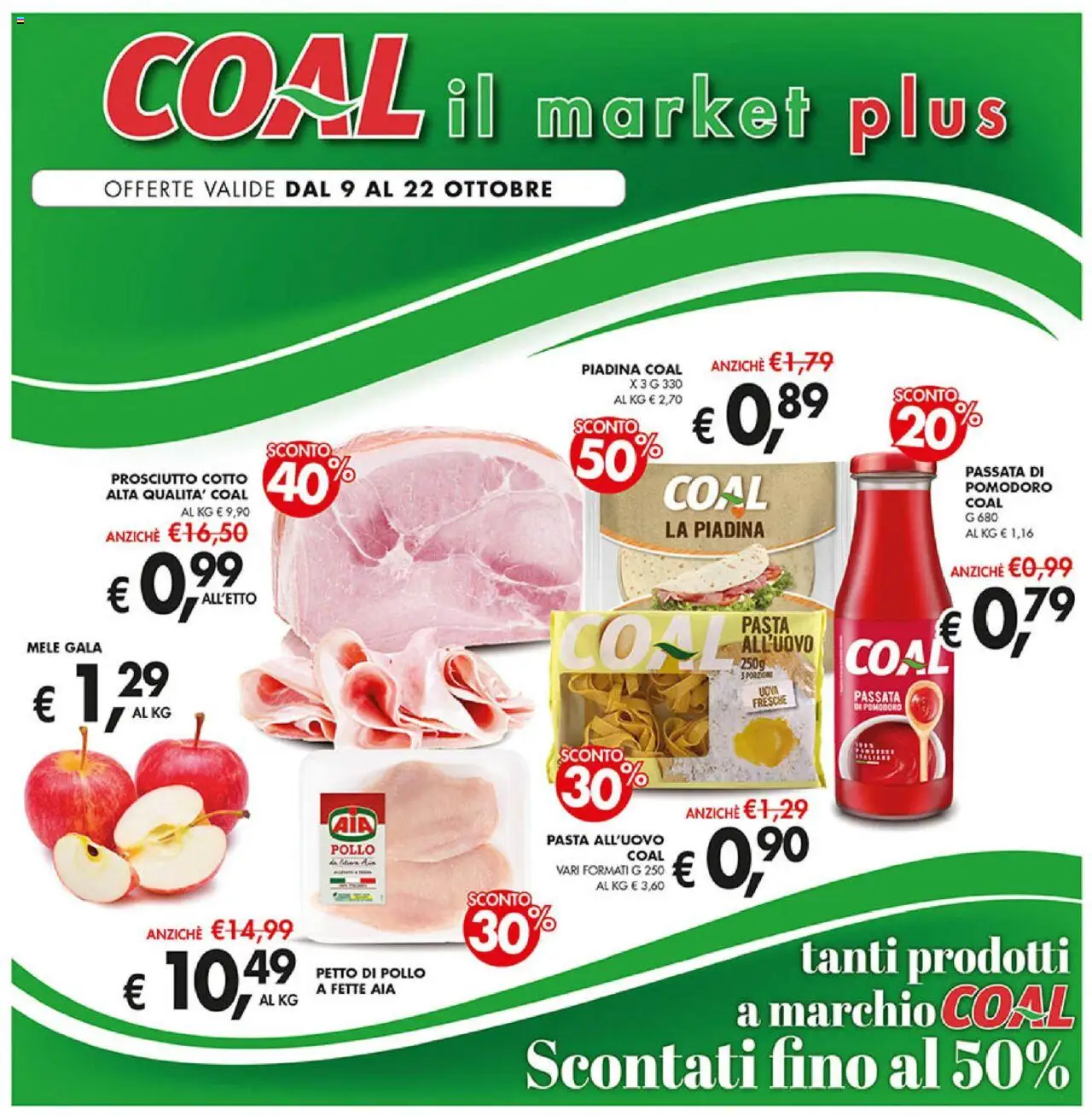 Le offerte sono valide dal 09/10/2025 - 22/10/2025, ma attenzione: gli sconti sono disponibili solo per un periodo limitato! Sfoglia subito il volantino e scopri prezzi straordinari su frutta e verdura, carne e pesce, latticini e prodotti da forno. Ogni settimana, Coal ti garantisce la massima qualità a prezzi imbattibili.