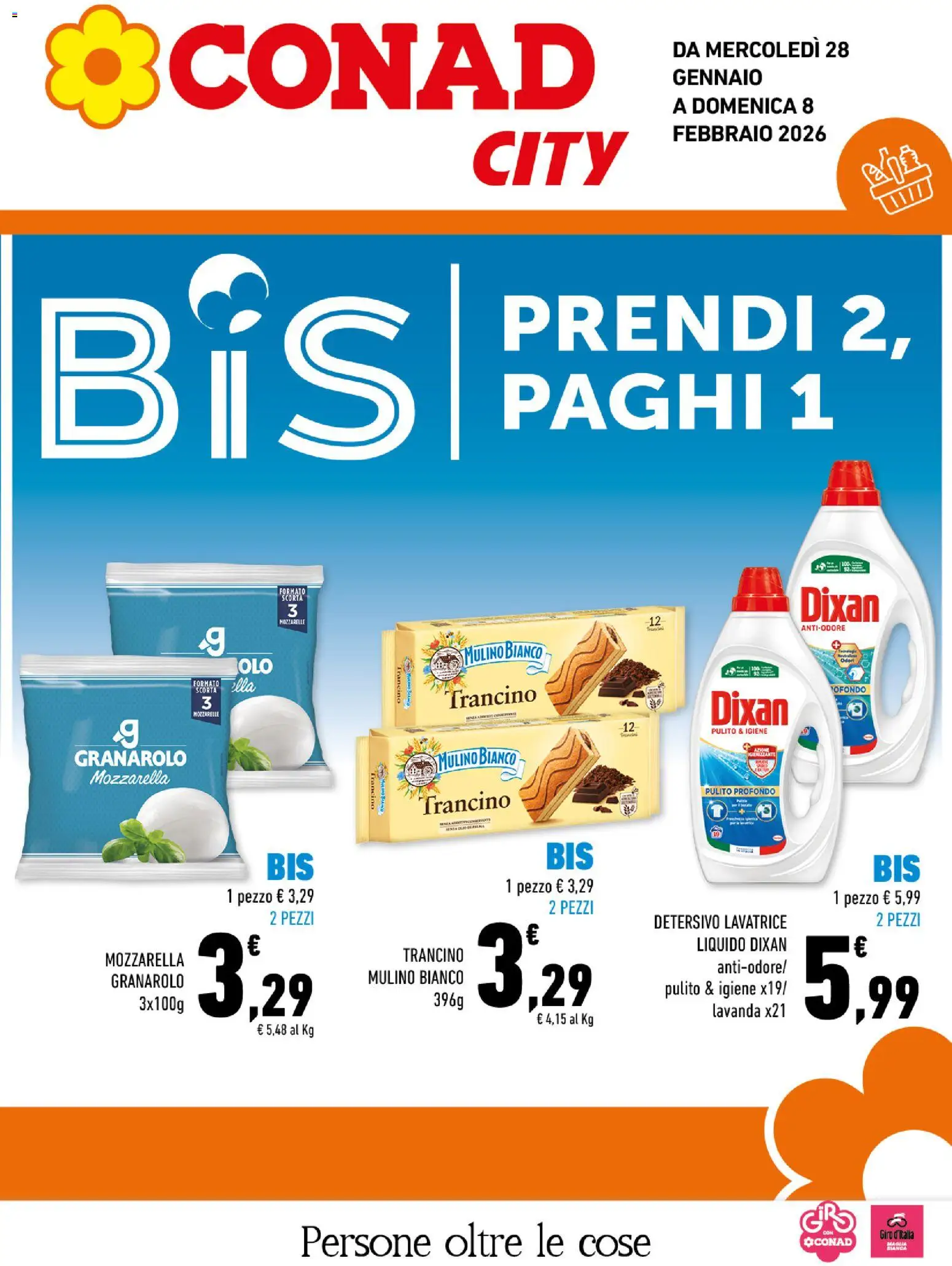 {"139517":[{"boxes":[{"content":"CONAD","coord":[[126,11],[486,13],[486,93],[126,92]]},{"content":"DA MERCOLED\u00cc 28","coord":[[544,30],[692,29],[692,48],[544,48]]},{"content":"GENNAIO","coord":[[544,54],[622,54],[622,71],[544,70]]},{"content":"A DOMENICA 8","coord":[[546,76],[663,76],[663,94],[546,94]]},{"content":"CITY","coord":[[384,104],[513,105],[512,153],[383,154]]},{"content":"PRENDI 2,","coord":[[407,235],[743,235],[743,292],[407,290]]},{"content":"PAGHI 1","coord":[[407,300],[677,299],[678,353],[407,355]]},{"content":"FORMATO","coord":[[227,477],[249,478],[249,484],[227,483]]},{"content":"Dixan","coord":[[650,473],[718,478],[718,508],[650,507]]},{"content":"SCORTA","coord":[[228,483],[247,483],[247,489],[228,489]]},{"content":"MOZZARELLE","coord":[[227,503],[249,502],[249,507],[227,507]]},{"content":"ANTIODORE","coord":[[651,508],[687,507],[687,512],[651,513]]},{"content":"MULINO BIANCO","coord":[[375,524],[445,520],[446,537],[376,542]]},{"content":"Oder","coord":[[683,535],[698,535],[698,538],[683,539]]},{"content":"Trancino","coord":[[327,541],[326,572],[322,572],[323,541]]},{"content":"FORMATO","coord":[[156,553],[178,553],[178,558],[156,558]]},{"content":"SCORTA","coord":[[158,559],[177,559],[177,563],[158,563]]},{"content":"Trancino","coord":[[362,559],[437,556],[438,573],[363,578]]},{"content":"Dixan","coord":[[579,559],[642,561],[642,590],[578,589]]},{"content":"OFONDO","coord":[[677,557],[705,557],[705,563],[677,563]]},{"content":"MOZZARELLE","coord":[[157,578],[178,578],[178,583],[157,583]]},{"content":"PULITO & IGIENE","coord":[[579,591],[624,591],[624,597],[579,597]]},{"content":"GRANAROLO","coord":[[61,609],[152,608],[152,624],[61,625]]},{"content":"MULINO BIANCO","coord":[[353,609],[423,607],[423,624],[353,627]]},{"content":"Mozzarella","coord":[[74,626],[135,626],[135,638],[74,638]]},{"content":"francino","coord":[[306,626],[305,659],[301,659],[301,626]]},{"content":"Trancino","coord":[[341,645],[415,643],[416,660],[342,664]]},{"content":"PULITO PROFONDO","coord":[[573,640],[631,640],[631,646],[573,646]]},{"content":"2 PEZZI","coord":[[443,730],[483,731],[483,745],[442,744]]},{"content":"2 PEZZI","coord":[[220,740],[255,740],[254,753],[220,753]]},{"content":"DETERSIVO LAVATRICE","coord":[[530,742],[639,742],[640,756],[530,757]]},{"content":"2 PEZZI","coord":[[713,741],[752,741],[752,755],[712,754]]},{"content":"MOZZARELLA","coord":[[83,772],[153,772],[153,787],[83,787]]},{"content":"TRANCINO","coord":[[326,769],[379,769],[379,784],[326,784]]},{"content":"LIQUIDO DIXAN","coord":[[565,759],[641,761],[641,775],[565,774]]},{"content":"GRANAROLO","coord":[[90,790],[150,791],[150,805],[90,804]]},{"content":"MULINO BIANCO","coord":[[297,788],[378,788],[378,803],[297,802]]},{"content":"antiodore\/","coord":[[582,780],[641,780],[641,793],[582,794]]},{"content":"pulito & igiene x19\/","coord":[[538,797],[640,796],[641,810],[538,812]]},{"content":"lavanda x21","coord":[[579,815],[642,814],[642,828],[579,829]]},{"content":"Persone oltre le cose","coord":[[243,993],[531,993],[531,1026],[243,1026]]},{"content":"\u00bfCONAD","coord":[[653,1005],[693,1005],[693,1014],[653,1014]]},{"content":"Giro d' Italia","coord":[[715,1000],[744,1000],[744,1008],[715,1008]]},{"content":"BIANCA","coord":[[721,1012],[738,1012],[738,1017],[721,1017]]}]}]}Le offerte sono valide dal 28/01/2026 - 08/02/2026, ma attenzione: gli sconti sono disponibili solo per un periodo limitato! Sfoglia subito il volantino e scopri prezzi straordinari su frutta e verdura, carne e pesce, latticini e prodotti da forno. Ogni settimana, Conad ti garantisce la massima qualità a prezzi imbattibili.