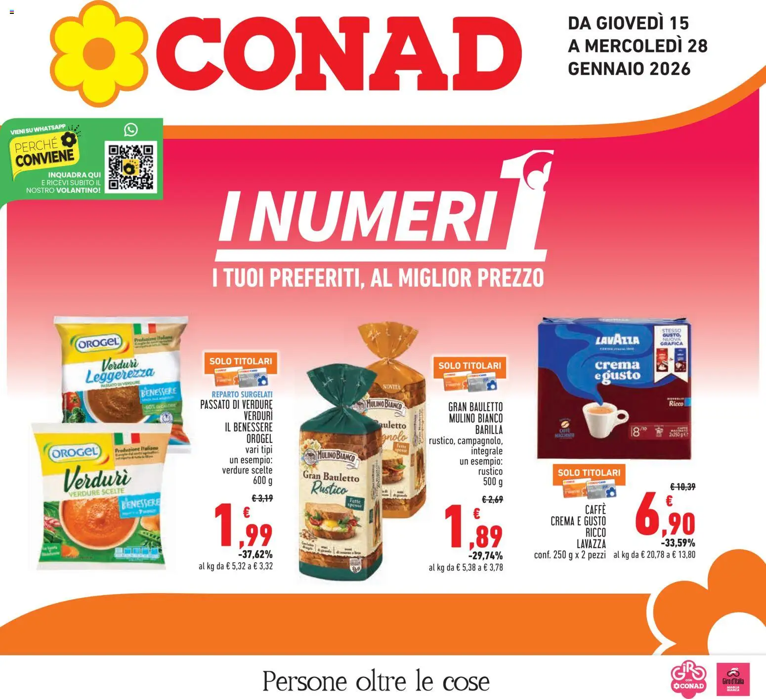 Le offerte sono valide dal 15/01/2026 - 28/01/2026, ma attenzione: gli sconti sono disponibili solo per un periodo limitato! Sfoglia subito il volantino e scopri prezzi straordinari su frutta e verdura, carne e pesce, latticini e prodotti da forno. Ogni settimana, Conad ti garantisce la massima qualità a prezzi imbattibili.
