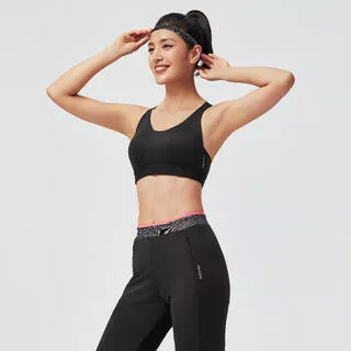 DOMYOS Leggings donna palestra push-up vita alta senza cuciture traspiranti neri