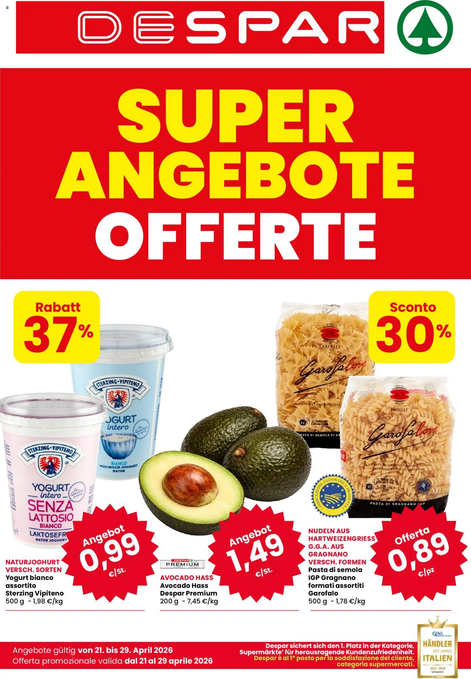 Le offerte sono valide dal 21/04/2026 - 29/04/2026, ma attenzione: gli sconti sono disponibili solo per un periodo limitato! Sfoglia subito il volantino e scopri prezzi straordinari su frutta e verdura, carne e pesce, latticini e prodotti da forno. Ogni settimana, Despar ti garantisce la massima qualità a prezzi imbattibili.