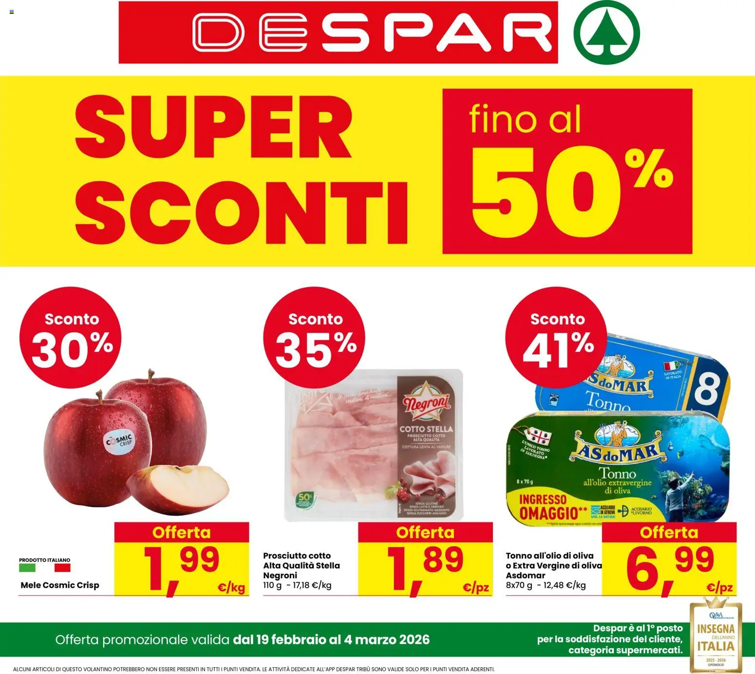 Le offerte sono valide dal 19/02/2026 - 04/03/2026, ma attenzione: gli sconti sono disponibili solo per un periodo limitato! Sfoglia subito il volantino e scopri prezzi straordinari su frutta e verdura, carne e pesce, latticini e prodotti da forno. Ogni settimana, Despar ti garantisce la massima qualità a prezzi imbattibili.