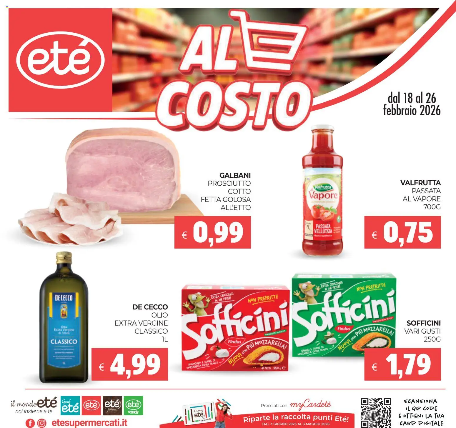 {"142490":[{"boxes":[{"content":"COSTO","coord":[[269,132],[529,135],[526,224],[269,222]]},{"content":"dal 18 al 26","coord":[[655,153],[742,153],[742,176],[654,175]]},{"content":"GALBANI","coord":[[372,292],[428,291],[428,303],[372,304]]},{"content":"PROSCIUTTO","coord":[[352,305],[424,305],[424,317],[352,317]]},{"content":"VALFRUTTA","coord":[[680,303],[750,304],[750,317],[679,315]]},{"content":"COTTO","coord":[[385,318],[426,319],[426,330],[384,330]]},{"content":"Valfrutta","coord":[[534,314],[563,314],[563,321],[534,321]]},{"content":"PASSATA","coord":[[699,317],[750,318],[750,331],[699,329]]},{"content":"FETTA GOLOSA","coord":[[339,332],[427,332],[427,344],[339,344]]},{"content":"Vapore","coord":[[523,321],[575,323],[574,340],[523,338]]},{"content":"AL VAPORE","coord":[[683,331],[750,331],[750,343],[683,343]]},{"content":"ALL'ETTO","coord":[[374,346],[427,347],[427,358],[374,357]]},{"content":"PASSATA","coord":[[535,380],[562,380],[562,388],[535,387]]},{"content":"VELLUTATA","coord":[[533,388],[566,387],[566,396],[533,397]]},{"content":"EXTRA CROCCANTI","coord":[[539,484],[581,476],[583,482],[540,491]]},{"content":"NON PREFRITTE","coord":[[603,485],[655,477],[656,488],[604,495]]},{"content":"DECECCO","coord":[[93,500],[124,500],[124,511],[92,511]]},{"content":"EXTRA CROCCANTI","coord":[[357,502],[397,494],[398,501],[358,508]]},{"content":"DE CECCO","coord":[[224,515],[285,515],[285,528],[224,528]]},{"content":"N AIR FRYER","coord":[[360,509],[392,502],[394,508],[361,515]]},{"content":"NON PREFRITTI","coord":[[420,505],[471,499],[472,509],[421,516]]},{"content":"OLIO","coord":[[257,528],[285,529],[285,541],[257,540]]},{"content":"Sofficini","coord":[[487,524],[668,478],[679,541],[510,590]]},{"content":"EXTRA VERGINE","coord":[[193,542],[286,542],[286,556],[193,555]]},{"content":"Sofficini","coord":[[296,548],[488,504],[499,561],[315,614]]},{"content":"SOFFICINI","coord":[[687,543],[750,543],[750,555],[687,554]]},{"content":"Extra Vergine","coord":[[90,557],[127,558],[126,564],[90,563]]},{"content":"CLASSICO","coord":[[229,556],[286,556],[286,569],[229,568]]},{"content":"VARI GUSTI","coord":[[685,556],[749,556],[749,568],[685,568]]},{"content":"CLASSICO","coord":[[85,575],[131,575],[131,585],[85,585]]},{"content":"NUOVI CON PI\u00d9 MOZZARELLA","coord":[[383,598],[483,575],[489,592],[387,624]]},{"content":"NUOVI CON PI\u00d9 MOZZARELLA","coord":[[570,574],[666,552],[673,567],[574,600]]},{"content":"il mondoet\u00e9","coord":[[17,676],[97,675],[97,694],[17,694]]},{"content":"Grand","coord":[[104,677],[120,676],[121,686],[104,686]]},{"content":"ete","coord":[[142,683],[168,683],[166,693],[141,693]]},{"content":"et\u00e9","coord":[[211,682],[239,682],[239,693],[210,693]]},{"content":"Premiati con myCardet\u00e9","coord":[[441,680],[563,676],[563,695],[442,696]]},{"content":"SCANSIONA","coord":[[686,677],[742,677],[742,686],[686,686]]},{"content":"noi insieme a te","coord":[[24,694],[89,694],[89,704],[24,704]]},{"content":"IL QR CODE","coord":[[688,689],[744,689],[744,699],[688,699]]},{"content":"smarty","coord":[[217,697],[235,697],[235,704],[217,703]]},{"content":"wowde","coord":[[329,696],[344,694],[344,698],[329,700]]},{"content":"etesupermercati.it","coord":[[85,712],[217,711],[217,724],[85,725]]},{"content":"Riparte la raccolta punti Et\u00e9","coord":[[412,703],[594,703],[594,719],[412,719]]},{"content":"E OTTIENI LA TUA","coord":[[677,701],[755,701],[755,712],[677,712]]},{"content":"wyCaudete","coord":[[330,713],[358,709],[359,714],[331,717]]},{"content":"CARD DIGITALE","coord":[[678,713],[754,713],[754,725],[678,724]]}]}]}Le offerte sono valide dal 18/02/2026 - 26/02/2026, ma attenzione: gli sconti sono disponibili solo per un periodo limitato! Sfoglia subito il volantino e scopri prezzi straordinari su frutta e verdura, carne e pesce, latticini e prodotti da forno. Ogni settimana, Eté ti garantisce la massima qualità a prezzi imbattibili.