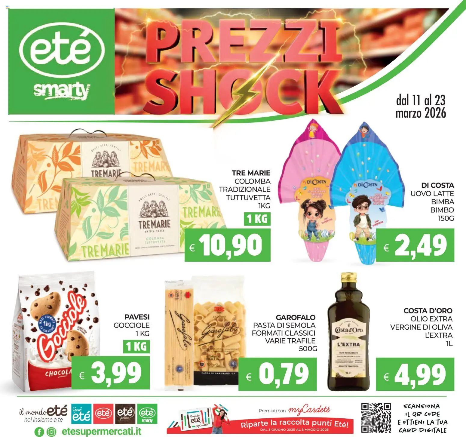 {"145616":[{"boxes":[{"content":"PREZZI","coord":[[245,31],[568,31],[569,105],[245,107]]},{"content":"smarty","coord":[[52,136],[150,135],[151,163],[52,164]]},{"content":"SHOCK","coord":[[239,111],[569,110],[569,192],[239,193]]},{"content":"dal 11 al 23","coord":[[657,154],[742,154],[742,176],[657,176]]},{"content":"TREMARIE","coord":[[152,278],[204,278],[204,297],[152,297]]},{"content":"TREMARY","coord":[[217,268],[279,265],[280,284],[218,288]]},{"content":"TRE MARIE","coord":[[383,281],[452,281],[452,293],[383,292]]},{"content":"COLOMBA","coord":[[389,294],[450,294],[450,307],[389,307]]},{"content":"DI COSTA","coord":[[509,298],[543,297],[543,306],[509,306]]},{"content":"TRADIZIONALE","coord":[[362,307],[451,307],[451,320],[362,319]]},{"content":"Di COSTA","coord":[[595,302],[628,302],[628,311],[595,311]]},{"content":"DI COSTA","coord":[[700,301],[754,302],[754,314],[700,313]]},{"content":"UOVO LATTE","coord":[[682,315],[756,315],[756,327],[682,326]]},{"content":"TREN","coord":[[57,329],[98,326],[97,348],[59,351]]},{"content":"TUTTUVETTA","coord":[[374,322],[450,322],[450,335],[374,334]]},{"content":"TREMARE","coord":[[301,342],[366,340],[366,360],[302,364]]},{"content":"BIMBA","coord":[[715,330],[755,330],[755,341],[714,340]]},{"content":"TREMARIE","coord":[[230,365],[284,362],[285,379],[231,382]]},{"content":"BIMBO","coord":[[715,343],[755,343],[755,354],[715,353]]},{"content":"ANTICA HARCA","coord":[[240,382],[273,380],[274,385],[240,387]]},{"content":"COLOMBA","coord":[[240,394],[272,392],[273,398],[240,400]]},{"content":"TUTTOVETTA","coord":[[238,400],[277,398],[278,403],[239,406]]},{"content":"TREMARIE","coord":[[135,407],[214,402],[215,425],[135,429]]},{"content":"Garofalo","coord":[[319,510],[322,580],[289,580],[287,510]]},{"content":"PAVESI","coord":[[203,520],[248,520],[249,531],[204,532]]},{"content":"GAROFALO","coord":[[454,521],[526,521],[526,534],[454,534]]},{"content":"COSTA D'ORO","coord":[[670,511],[752,510],[752,521],[670,522]]},{"content":"GOCCIOLE","coord":[[188,534],[248,534],[248,546],[188,547]]},{"content":"PASTA DI SEMOLA","coord":[[419,533],[525,533],[525,547],[419,546]]},{"content":"OLIO EXTRA","coord":[[682,524],[754,524],[753,536],[682,535]]},{"content":"FORMATI CLASSICI","coord":[[417,547],[525,546],[525,559],[417,560]]},{"content":"Ostad'Oro","coord":[[556,543],[604,543],[604,553],[556,553]]},{"content":"VERGINE DI OLIVA","coord":[[648,537],[753,537],[753,550],[648,549]]},{"content":"L'EXTRA","coord":[[706,550],[754,550],[754,563],[706,563]]},{"content":"Gocciole","coord":[[50,583],[118,471],[157,493],[86,606]]},{"content":"VARIE TRAFILE","coord":[[440,560],[525,560],[525,572],[440,573]]},{"content":"L'EXTRA","coord":[[560,568],[598,568],[598,576],[560,576]]},{"content":"CHOCOLA","coord":[[74,613],[117,612],[118,625],[74,628]]},{"content":"il mondo ete","coord":[[31,675],[116,672],[116,691],[31,692]]},{"content":"\u00e9t\u00e9l","coord":[[120,685],[153,681],[152,696],[121,698]]},{"content":"et\u00e9","coord":[[161,680],[186,681],[186,691],[160,691]]},{"content":"Cet\u00e9","coord":[[230,680],[256,679],[256,691],[230,692]]},{"content":"SCANSIONA","coord":[[670,669],[731,669],[731,680],[670,680]]},{"content":"noi insieme a te","coord":[[40,693],[104,693],[105,702],[40,703]]},{"content":"all Tetell","coord":[[292,687],[344,684],[345,703],[294,714]]},{"content":"Premiati con myCardet\u00e9","coord":[[429,671],[550,668],[551,690],[429,691]]},{"content":"IL QR CODE","coord":[[671,683],[732,682],[732,693],[671,694]]},{"content":"farine","coord":[[199,692],[219,691],[219,697],[199,697]]},{"content":"smarty","coord":[[235,696],[254,696],[254,703],[234,702]]},{"content":"etesupermercati.it","coord":[[100,709],[236,709],[236,722],[100,723]]},{"content":"Riparte la raccolta punti Et\u00e9","coord":[[398,697],[582,696],[582,712],[399,713]]},{"content":"EOTTIENI LA TUA","coord":[[658,696],[745,696],[745,707],[658,707]]},{"content":"CARD DIGITALE","coord":[[663,709],[744,709],[744,721],[663,721]]}]}]}Le offerte sono valide dal 11/03/2026 - 23/03/2026, ma attenzione: gli sconti sono disponibili solo per un periodo limitato! Sfoglia subito il volantino e scopri prezzi straordinari su frutta e verdura, carne e pesce, latticini e prodotti da forno. Ogni settimana, Eté ti garantisce la massima qualità a prezzi imbattibili.