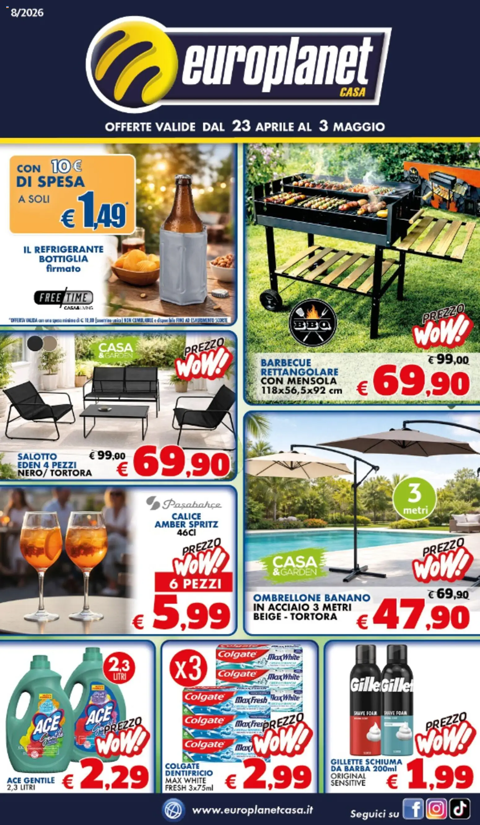 Le promozioni sono valide dal 23/04/2026 - 03/05/2026, ma fai attenzione: gli sconti sono limitati nel tempo e i prodotti più richiesti potrebbero terminare presto. Non perdere l’occasione di scoprire cosa Europlanet Casa ha preparato per te questa settimana: prezzi imbattibili e qualità garantita!