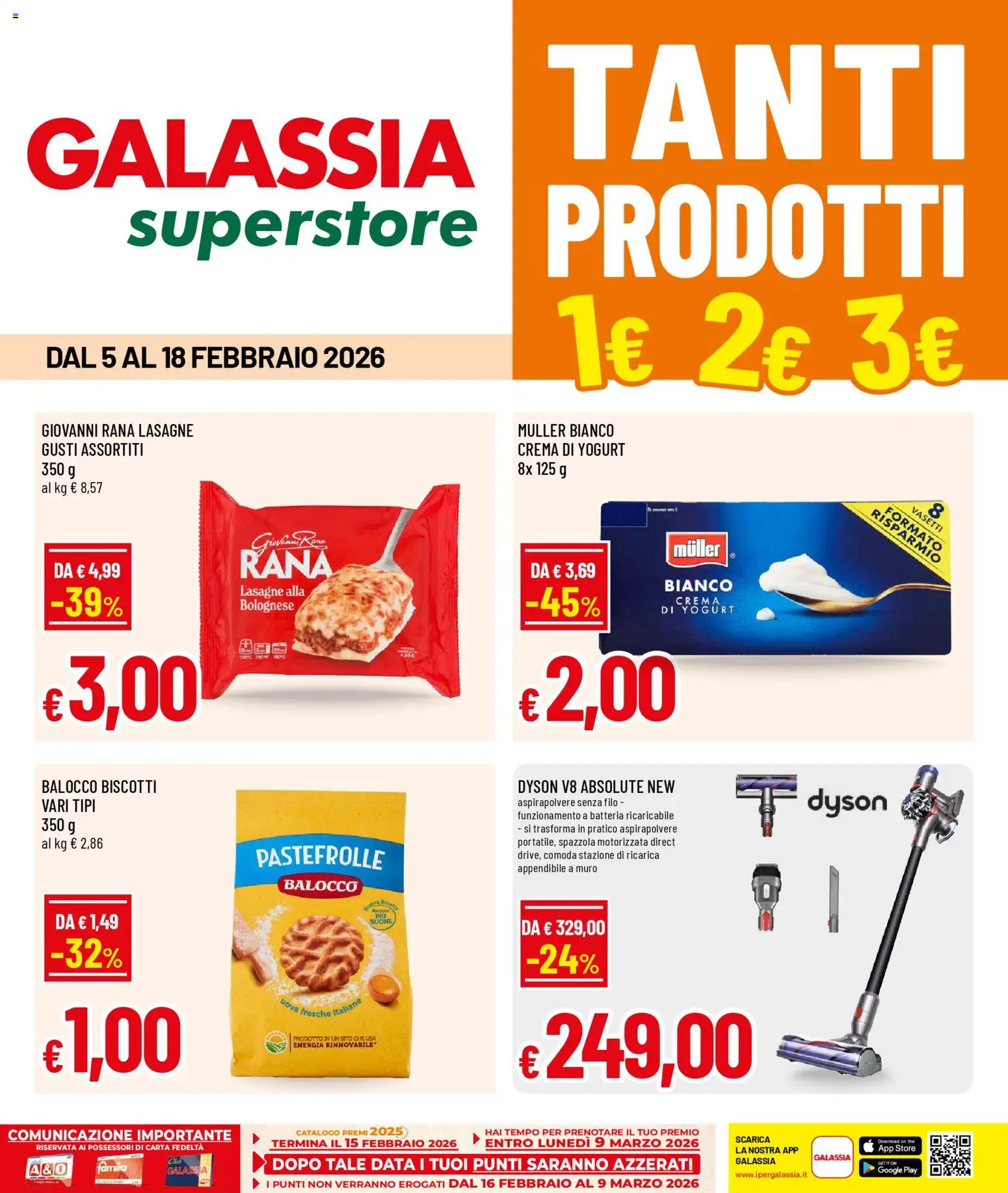 {"140525":[{"boxes":[{"content":"GALASSIA","coord":[[20,86],[365,86],[365,148],[20,147]]},{"content":"TANTI","coord":[[413,29],[744,29],[744,128],[413,129]]},{"content":"superstore","coord":[[95,157],[367,151],[368,197],[95,201]]},{"content":"PRODOTTI","coord":[[413,137],[742,139],[741,217],[413,213]]},{"content":"GIOVANNI RANA LASAGNE","coord":[[30,324],[151,324],[151,337],[30,337]]},{"content":"MULLER BIANCO","coord":[[395,324],[473,324],[473,337],[395,337]]},{"content":"GUSTI ASSORTITI","coord":[[31,339],[111,338],[111,351],[31,351]]},{"content":"CREMA DI YOGURT","coord":[[396,339],[481,338],[481,351],[396,352]]},{"content":"FORMATO","coord":[[682,387],[725,418],[721,424],[678,393]]},{"content":"VASETTI","coord":[[702,388],[725,405],[722,409],[699,393]]},{"content":"RISPARMIO","coord":[[672,390],[724,427],[720,433],[668,395]]},{"content":"m\u00fcller","coord":[[517,416],[553,416],[552,428],[517,429]]},{"content":"RANA","coord":[[184,420],[255,421],[256,445],[184,446]]},{"content":"Lasagne alla","coord":[[183,448],[234,449],[234,460],[183,459]]},{"content":"BIANCO","coord":[[510,444],[562,443],[562,455],[510,456]]},{"content":"Bolognese","coord":[[185,459],[226,460],[226,470],[185,469]]},{"content":"CREMA","coord":[[517,458],[553,458],[553,465],[517,465]]},{"content":"DI YOGURT","coord":[[507,464],[564,464],[564,472],[507,473]]},{"content":"BALOCCO BISCOTTI","coord":[[31,597],[120,597],[120,611],[31,610]]},{"content":"DYSON V8 ABSOLUTE NEW","coord":[[397,597],[520,597],[520,610],[397,610]]},{"content":"VARI TIPI","coord":[[30,612],[72,612],[73,625],[30,625]]},{"content":"dyson","coord":[[619,603],[685,604],[685,627],[618,628]]},{"content":"aspirapolvere senza filo","coord":[[397,613],[479,612],[480,620],[397,621]]},{"content":"funzionamento a batteria ricaricabile","coord":[[397,622],[518,622],[518,630],[397,630]]},{"content":"si trasforma in pratico aspirapolvere","coord":[[397,632],[521,633],[521,642],[397,641]]},{"content":"PASTEFROLLE","coord":[[195,647],[298,648],[297,670],[195,668]]},{"content":"portatile, spazzola motorizzata direct","coord":[[397,643],[519,643],[519,651],[397,652]]},{"content":"drive, comoda stazione di ricarica","coord":[[397,653],[507,653],[507,661],[397,661]]},{"content":"appendibile a muro","coord":[[397,663],[459,663],[459,672],[397,672]]},{"content":"BALOCCO","coord":[[217,674],[275,675],[274,687],[217,685]]},{"content":"Ancora","coord":[[285,698],[299,698],[298,702],[285,701]]},{"content":"BUONE","coord":[[283,705],[303,705],[303,710],[283,711]]},{"content":"uova fresche italiane","coord":[[212,766],[277,768],[277,780],[211,779]]},{"content":"PRODOTTO IN UN SITO O","coord":[[225,794],[276,795],[275,802],[224,801]]},{"content":"ENERGIA RINNOVABILE","coord":[[223,798],[288,797],[288,806],[223,806]]},{"content":"COMUNICAZIONE IMPORTANTE","coord":[[5,867],[178,867],[178,876],[5,876]]},{"content":"HAI TEMPO PER PRENOTARE IL TUO PREMIO","coord":[[372,866],[537,866],[537,873],[372,873]]},{"content":"SCARICA","coord":[[563,872],[592,872],[592,879],[563,878]]},{"content":"RISERVATA AI POSSESSORI DI CARTA FEDELT\u00c0","coord":[[27,878],[156,878],[156,884],[27,884]]},{"content":"Download on","coord":[[674,874],[696,873],[696,879],[674,879]]},{"content":"LA NOSTRA APP","coord":[[564,880],[614,880],[614,886],[564,887]]},{"content":"App Store","coord":[[672,877],[702,877],[702,883],[672,883]]},{"content":"famila","coord":[[73,890],[97,889],[98,902],[74,902]]},{"content":"GALASSIA","coord":[[564,889],[596,889],[596,895],[564,895]]},{"content":"GALASSIA","coord":[[625,886],[654,886],[654,892],[625,892]]},{"content":"DOPO TALE DATA I TUOI PUNTI SARANNO AZZERATI","coord":[[203,888],[536,888],[536,900],[203,901]]},{"content":"GALASSIA","coord":[[127,896],[159,896],[159,903],[127,903]]},{"content":"www.ipergalassia.it","coord":[[564,900],[620,899],[620,906],[564,906]]},{"content":"Google Play","coord":[[662,895],[707,895],[707,901],[662,902]]}]}]}Le offerte sono valide dal 05/02/2026 - 18/02/2026, ma attenzione: gli sconti sono disponibili solo per un periodo limitato! Sfoglia subito il volantino e scopri prezzi straordinari su frutta e verdura, carne e pesce, latticini e prodotti da forno. Ogni settimana, Galassia ti garantisce la massima qualità a prezzi imbattibili.