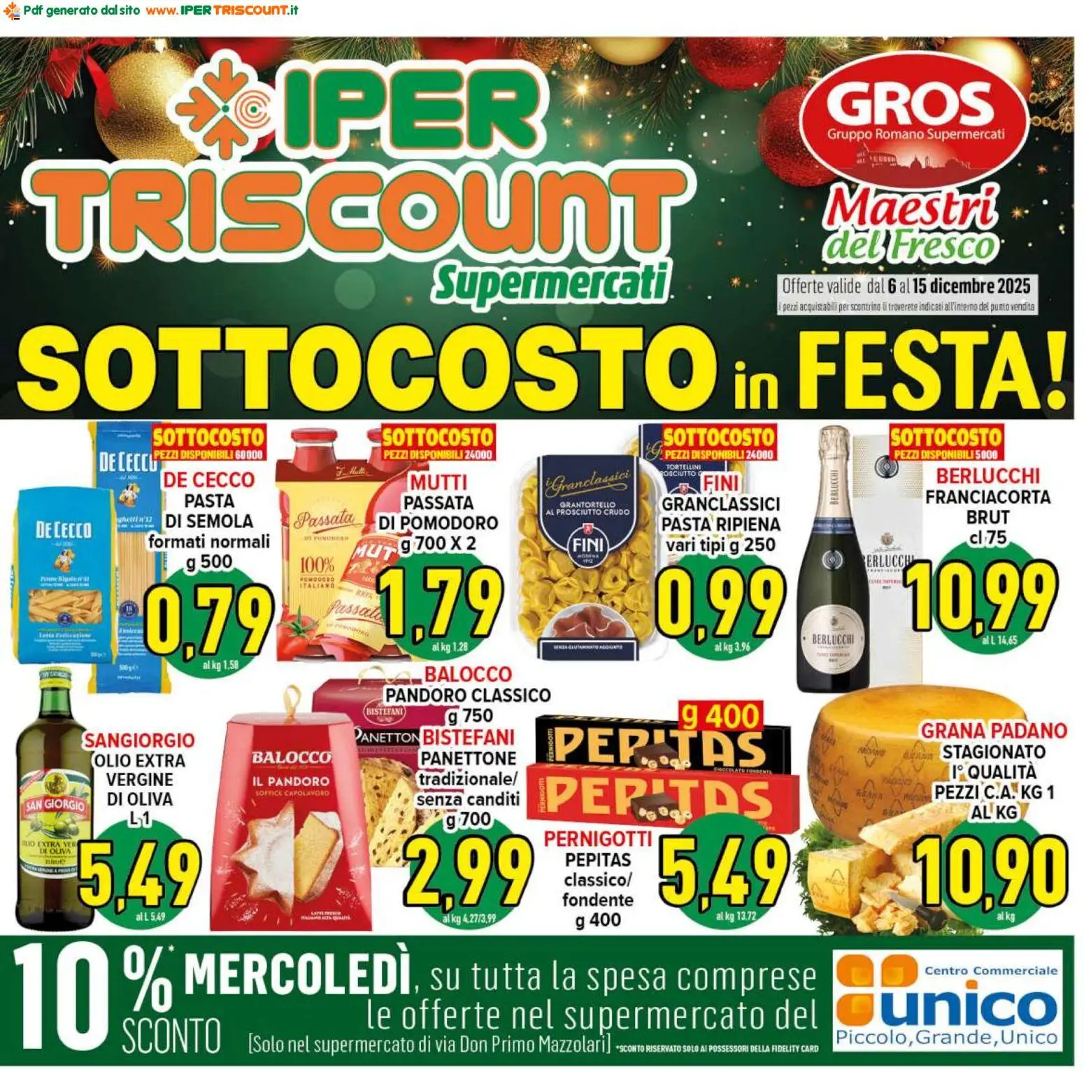 Il nuovo volantino Ipertriscount è sfogliabile online comodamente da casa o dal tuo smartphone, così puoi scoprire in pochi secondi tutte le offerte attive. All’interno troverai informazioni chiare su quali prodotti sono in sconto e fino a quando sono validi (06/12/2025 - 15/12/2025), per aiutarti a cogliere al volo le promozioni prima che finiscano. Ogni settimana sono disponibili sconti su alimentari freschi, prodotti per la casa e articoli stagionali, perfetti per pianificare la spesa senza stress e con il massimo risparmio!