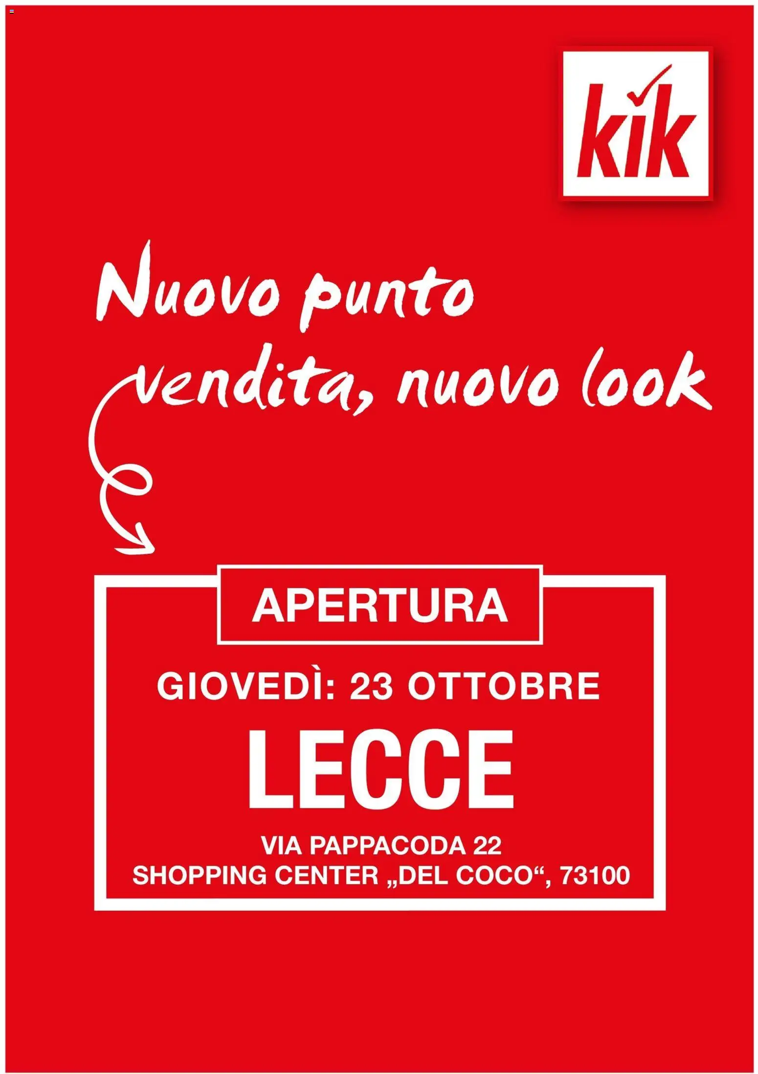 Hai già visto il nuovo volantino di KiK? Se no, è il momento di dare un’occhiata! Questo mese, il tuo negozio di fiducia ha preparato per te un volantino ricco di offerte imperdibili e sconti eccezionali, su un totale di ben 1 pagine.