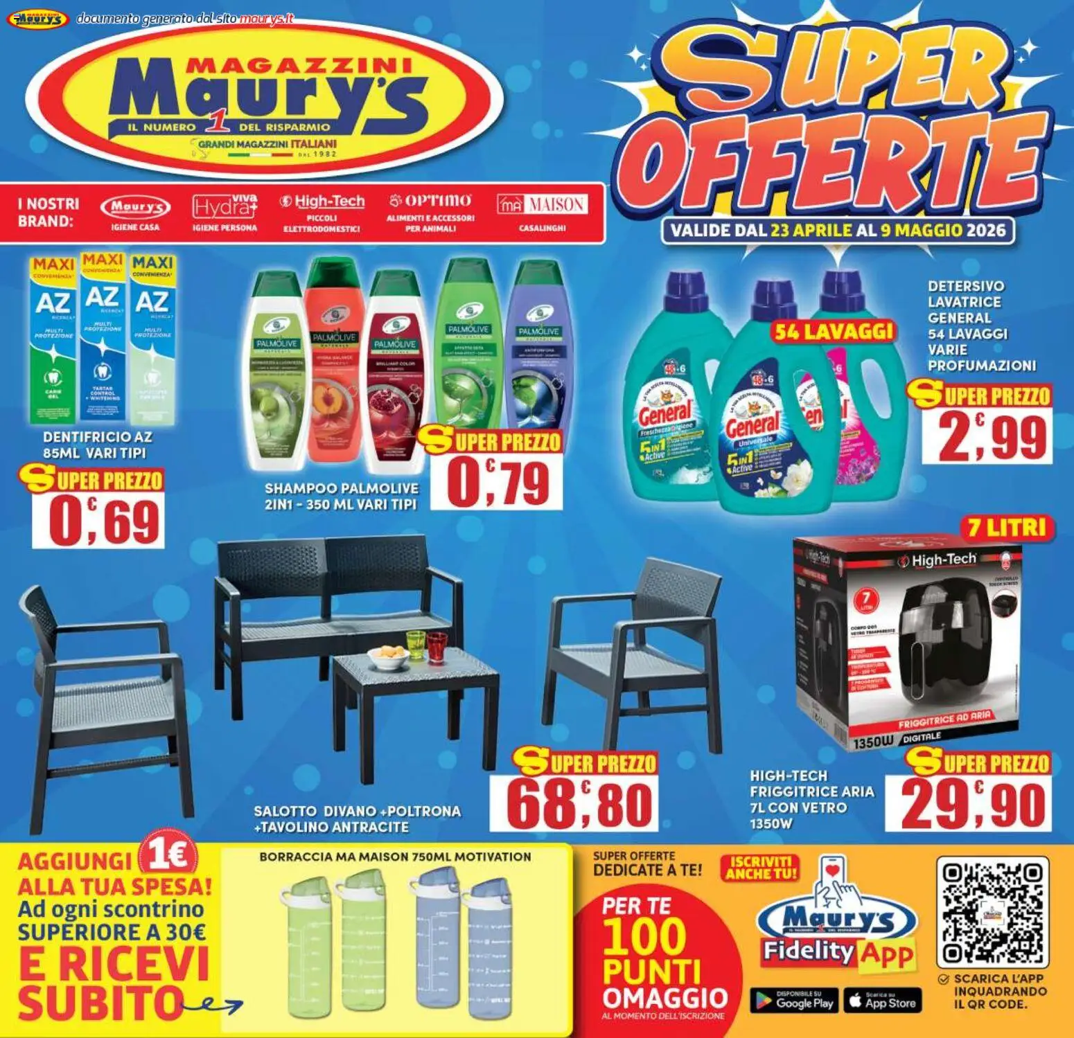 Le promozioni sono valide dal 23/04/2026 - 09/05/2026, ma fai attenzione: gli sconti sono limitati nel tempo e i prodotti più richiesti potrebbero terminare presto. Non perdere l’occasione di scoprire cosa Maury's ha preparato per te questa settimana: prezzi imbattibili e qualità garantita!