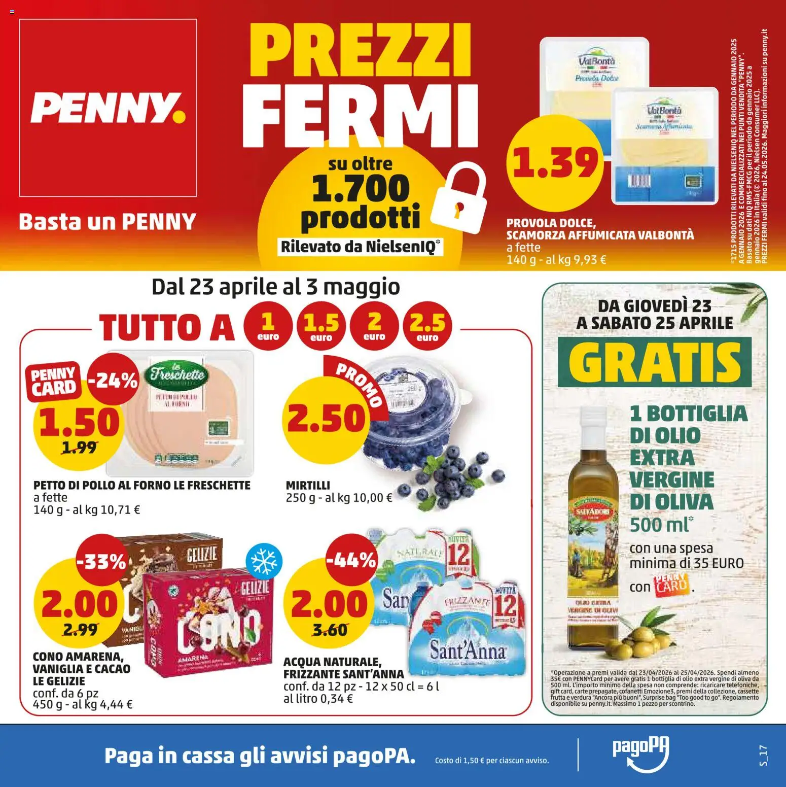 []Le offerte sono valide dal 23/04/2026 - 03/05/2026, ma attenzione: gli sconti sono disponibili solo per un periodo limitato! Sfoglia subito il volantino e scopri prezzi straordinari su frutta e verdura, carne e pesce, latticini e prodotti da forno. Ogni settimana, PENNY ti garantisce la massima qualità a prezzi imbattibili.