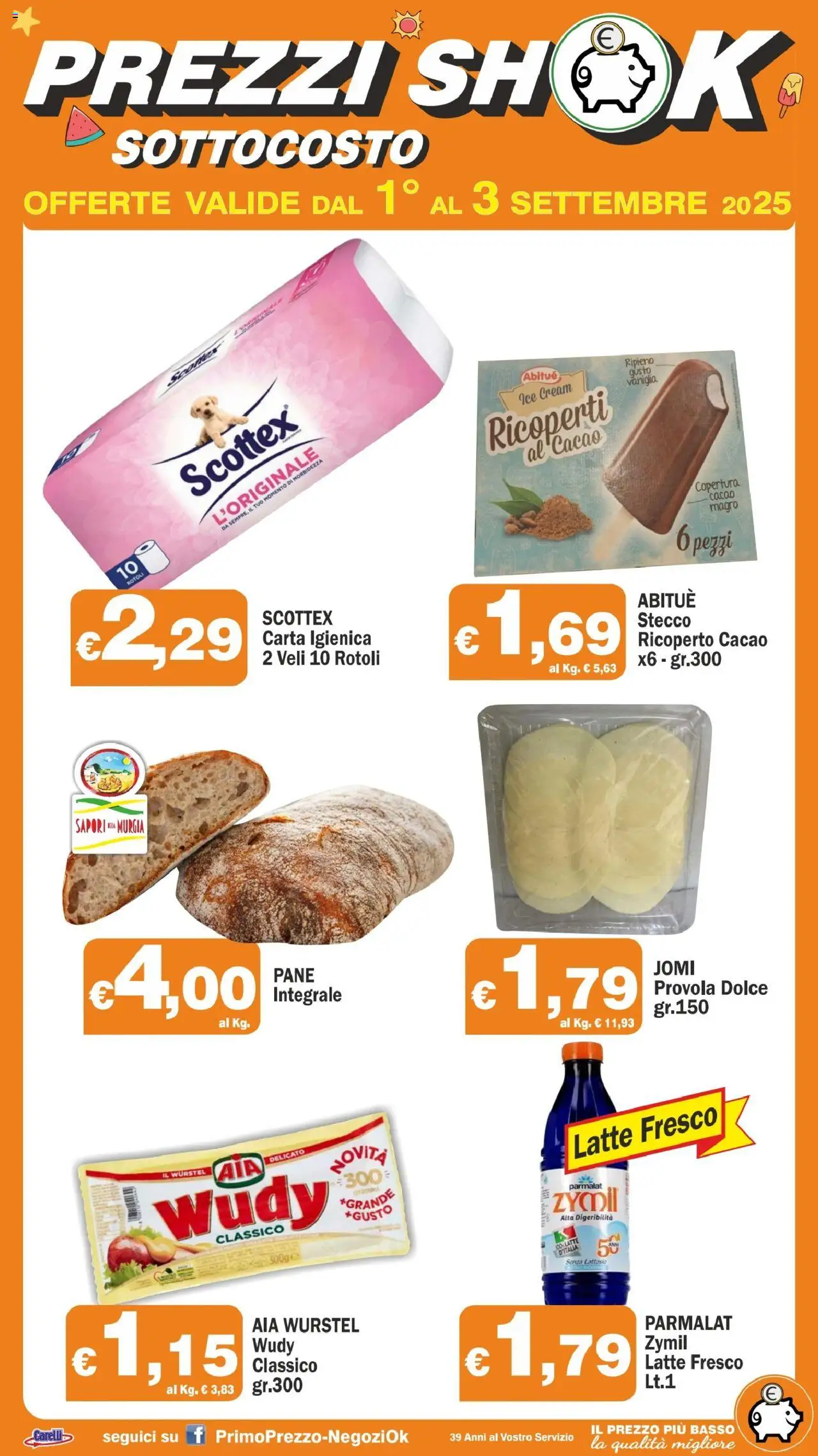 Le offerte sono valide dal 01/09/2025 - 03/09/2025, ma attenzione: gli sconti sono disponibili solo per un periodo limitato! Sfoglia subito il volantino e scopri prezzi straordinari su frutta e verdura, carne e pesce, latticini e prodotti da forno. Ogni settimana, Primo Prezzo ti garantisce la massima qualità a prezzi imbattibili.