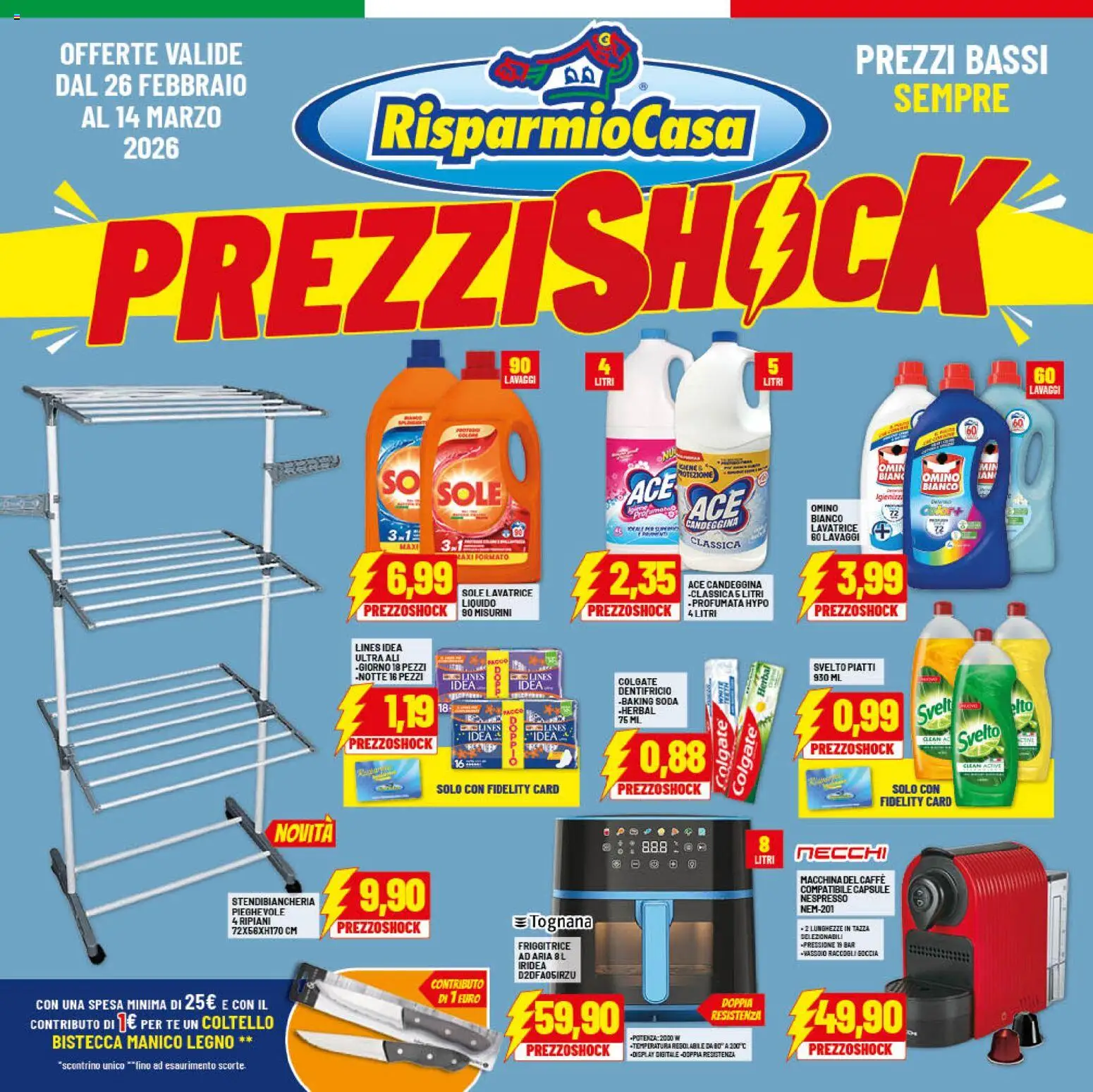 Le promozioni sono valide dal 26/02/2026 - 14/03/2026, ma fai attenzione: gli sconti sono limitati nel tempo e i prodotti più richiesti potrebbero terminare presto. Non perdere l’occasione di scoprire cosa RisparmioCasa ha preparato per te questa settimana: prezzi imbattibili e qualità garantita!