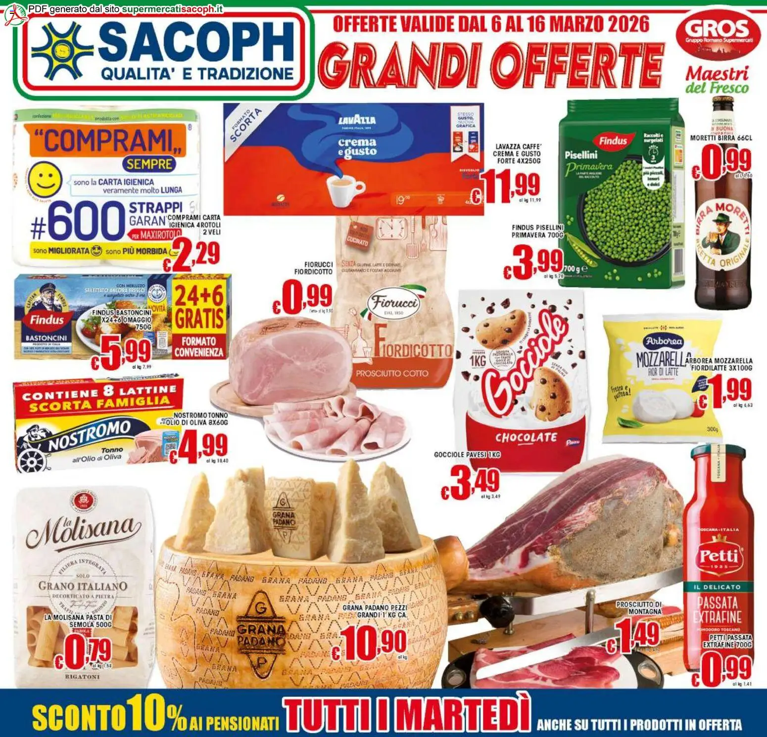 Il nuovo volantino Sacoph è sfogliabile online comodamente da casa o dal tuo smartphone, così puoi scoprire in pochi secondi tutte le offerte attive. All’interno troverai informazioni chiare su quali prodotti sono in sconto e fino a quando sono validi (06/03/2026 - 16/03/2026), per aiutarti a cogliere al volo le promozioni prima che finiscano. Ogni settimana sono disponibili sconti su alimentari freschi, prodotti per la casa e articoli stagionali, perfetti per pianificare la spesa senza stress e con il massimo risparmio!