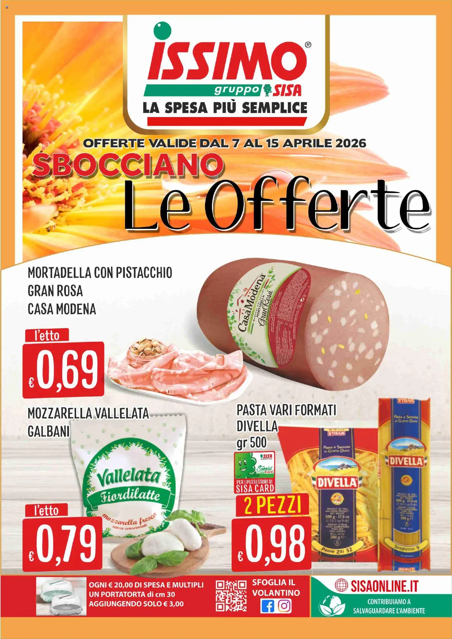 Le offerte sono valide dal 07/04/2026 - 15/04/2026, ma attenzione: gli sconti sono disponibili solo per un periodo limitato! Sfoglia subito il volantino e scopri prezzi straordinari su frutta e verdura, carne e pesce, latticini e prodotti da forno. Ogni settimana, SISA ti garantisce la massima qualità a prezzi imbattibili.