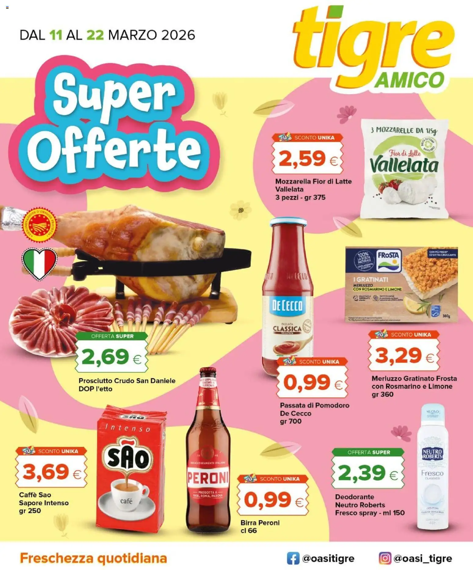 {"145571":[{"boxes":[{"content":"tigre","coord":[[471,0],[752,10],[752,155],[473,153]]},{"content":"Super","coord":[[80,111],[297,120],[291,203],[80,200]]},{"content":"Offerte","coord":[[42,204],[335,203],[336,299],[42,302]]},{"content":"EU & SCONTO UNIKA","coord":[[457,218],[549,219],[549,230],[457,229]]},{"content":"KR SETCAMY","coord":[[691,225],[713,227],[712,236],[690,232]]},{"content":"Fior di Latte","coord":[[636,244],[692,245],[691,258],[636,256]]},{"content":"Vallelata","coord":[[605,254],[721,254],[721,285],[605,285]]},{"content":"Mozzarella Fior di Latte","coord":[[448,290],[577,289],[577,303],[448,304]]},{"content":"Vallelata","coord":[[451,304],[496,304],[496,316],[451,316]]},{"content":"COM PIL PESCE'","coord":[[702,410],[734,410],[734,415],[702,415]]},{"content":"FROSTA","coord":[[619,412],[652,412],[652,423],[619,423]]},{"content":"ED EXTRA CROCCANTE","coord":[[702,415],[747,415],[747,420],[702,419]]},{"content":"LA SCELTA","coord":[[585,422],[606,418],[607,423],[585,428]]},{"content":"NATURALE","coord":[[586,427],[607,423],[608,427],[587,432]]},{"content":"MERLUZZO","coord":[[578,464],[611,464],[611,470],[578,470]]},{"content":"CON ROSMARINO E LIMONE","coord":[[577,470],[658,470],[658,477],[577,477]]},{"content":"DE CECCO","coord":[[443,490],[495,491],[494,511],[442,508]]},{"content":"PASSATA","coord":[[460,528],[480,529],[480,533],[460,533]]},{"content":"CLASSICA","coord":[[447,533],[494,533],[494,544],[447,544]]},{"content":"OFFERTA SUPER","coord":[[148,545],[219,545],[219,555],[148,555]]},{"content":"CU SCONTO UNIKA","coord":[[613,543],[707,543],[707,552],[613,552]]},{"content":"SCONTO UNIKA","coord":[[488,588],[556,588],[556,597],[488,597]]},{"content":"Prosciutto Crudo San Daniele","coord":[[128,618],[289,618],[289,629],[128,629]]},{"content":"Merluzzo Gratinato Frosta","coord":[[608,614],[749,614],[749,625],[608,625]]},{"content":"DOP l'etto","coord":[[128,631],[183,632],[183,643],[128,642]]},{"content":"con Rosmarino e Limone","coord":[[607,628],[740,628],[741,639],[607,639]]},{"content":"Passata di Pomodoro","coord":[[459,658],[573,658],[573,670],[459,670]]},{"content":"De Cecco","coord":[[458,672],[510,672],[510,683],[458,683]]},{"content":"Intenso","coord":[[169,692],[246,697],[246,708],[169,705]]},{"content":"ZU SCONTO UNIKA","coord":[[35,733],[129,733],[129,744],[35,744]]},{"content":"OFFERTA SUPER","coord":[[568,736],[639,736],[639,745],[568,745]]},{"content":"NEUTRO","coord":[[691,735],[727,735],[727,747],[691,746]]},{"content":"SDISCUTIBILMENTE ITNULAMI","coord":[[310,755],[369,755],[369,762],[310,761]]},{"content":"PERONI","coord":[[307,771],[376,772],[376,794],[307,793]]},{"content":"EU SCONTO UNIKA","coord":[[400,777],[491,778],[491,789],[400,789]]},{"content":"Fresco","coord":[[689,770],[727,771],[727,780],[689,779]]},{"content":"CLASSICO","coord":[[696,781],[721,781],[721,787],[696,786]]},{"content":"Caff\u00e8 Sao","coord":[[32,805],[83,805],[83,816],[32,816]]},{"content":"PRODOTTA A","coord":[[314,804],[363,804],[363,811],[314,811]]},{"content":"BARI, ROMA, PA","coord":[[314,808],[353,808],[353,814],[314,815]]},{"content":"Deodorante","coord":[[549,808],[612,809],[612,820],[548,819]]},{"content":"Sapore Intenso","coord":[[30,819],[113,819],[113,830],[30,830]]},{"content":"caf\u00e9","coord":[[197,816],[217,817],[217,826],[197,826]]},{"content":"Neutro Roberts","coord":[[548,821],[632,822],[632,833],[548,832]]},{"content":"Con DA SLICENYUS","coord":[[689,836],[728,836],[728,842],[689,842]]},{"content":"Birra Peroni","coord":[[393,851],[459,851],[458,863],[393,862]]},{"content":"cl 66","coord":[[395,865],[425,864],[425,875],[395,875]]},{"content":"Freschezza quotidiana","coord":[[29,903],[274,903],[274,926],[29,926]]},{"content":"@oasitigre","coord":[[494,907],[582,907],[582,924],[494,924]]},{"content":"@oasitigre","coord":[[647,907],[741,908],[741,925],[646,923]]}]}]}Le offerte sono valide dal 10/03/2026 - 22/03/2026, ma attenzione: gli sconti sono disponibili solo per un periodo limitato! Sfoglia subito il volantino e scopri prezzi straordinari su frutta e verdura, carne e pesce, latticini e prodotti da forno. Ogni settimana, Tigre ti garantisce la massima qualità a prezzi imbattibili.
