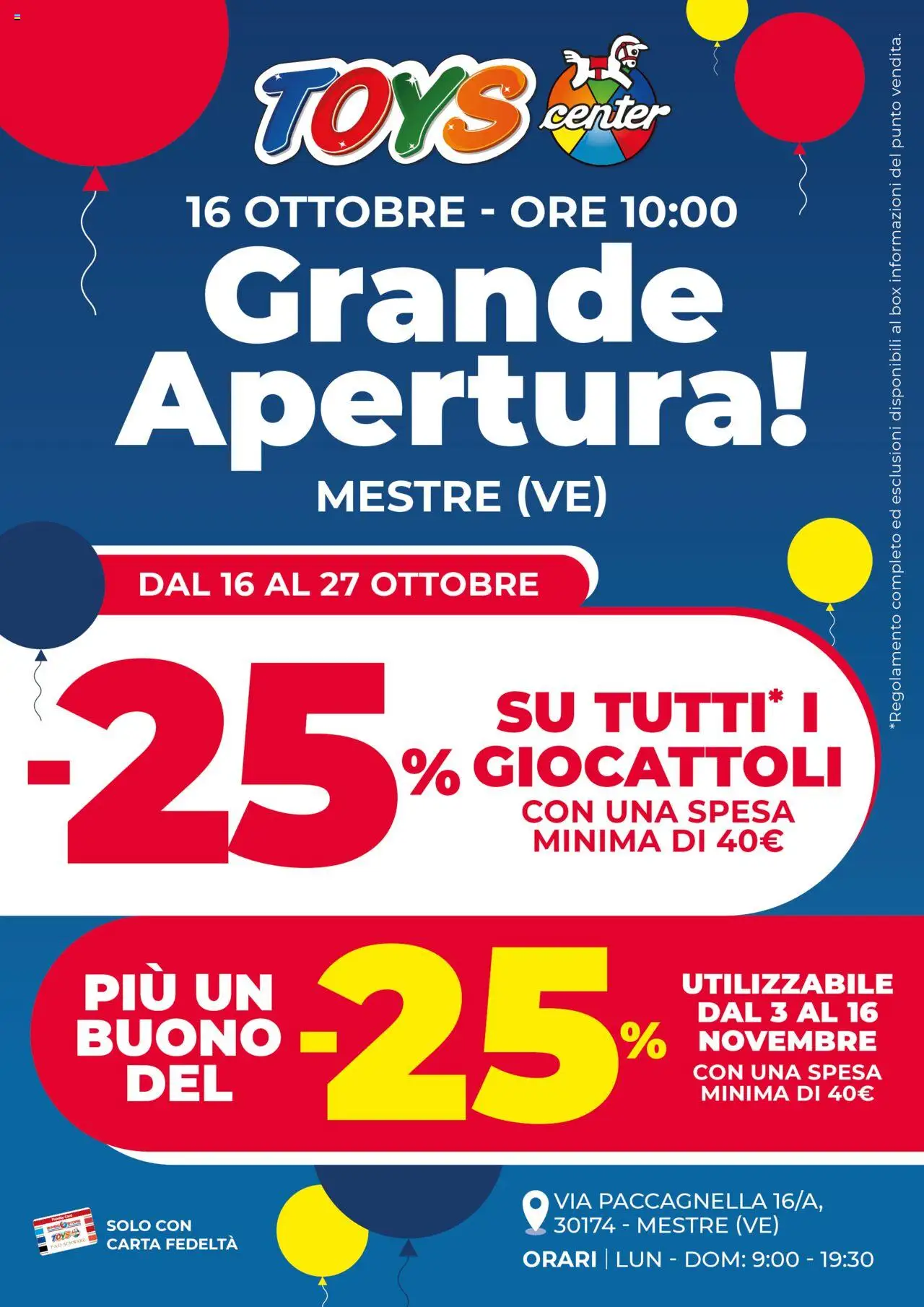 Toys Center Volantino Nuova Apertura Mestre anteprima dal 16/10 2025 - offerte settimana
