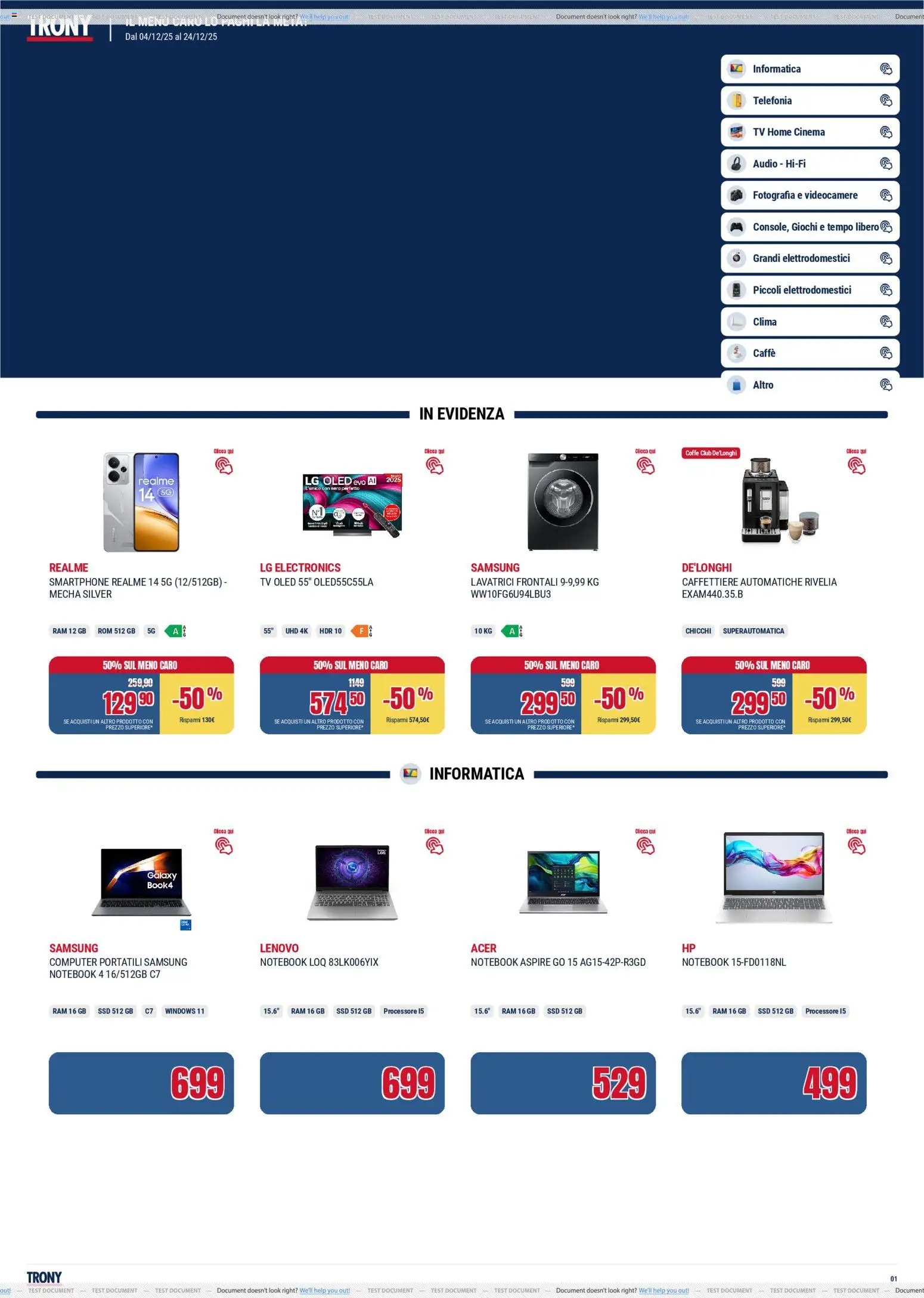 Le promozioni sono valide dal 04/12/2025 - 24/12/2025, ma fai attenzione: gli sconti sono limitati nel tempo e i prodotti più richiesti potrebbero terminare presto. Non perdere l’occasione di scoprire cosa Trony ha preparato per te questa settimana: prezzi imbattibili e qualità garantita!